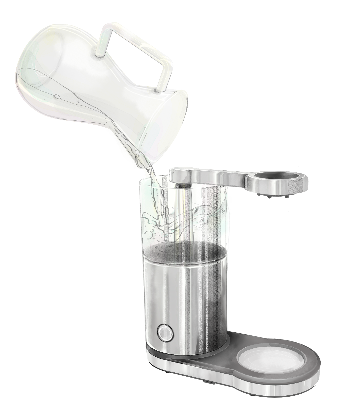 - Use the decanter to pour the desired amount of cold water into the water reservoir.