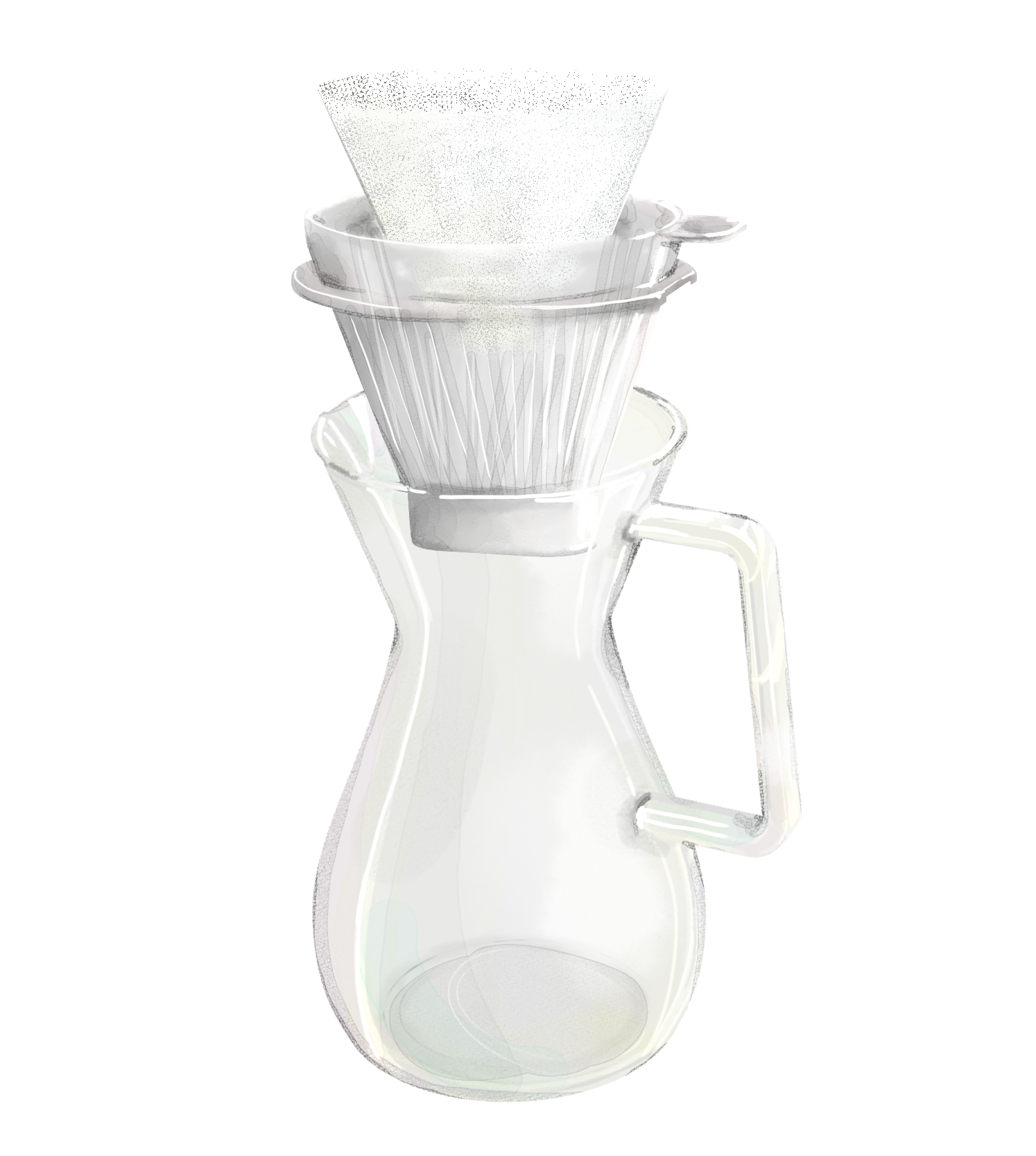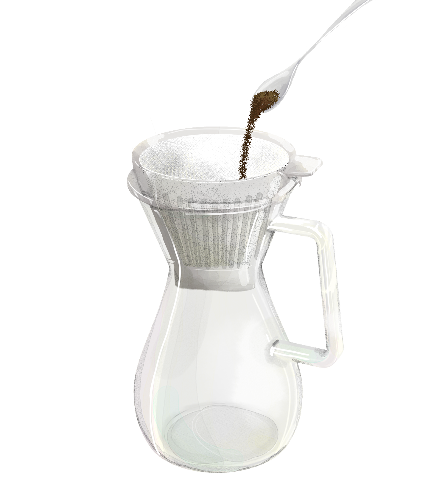 Add the filter with filter holder with the filter stand attached into the neck of the empty decanter.