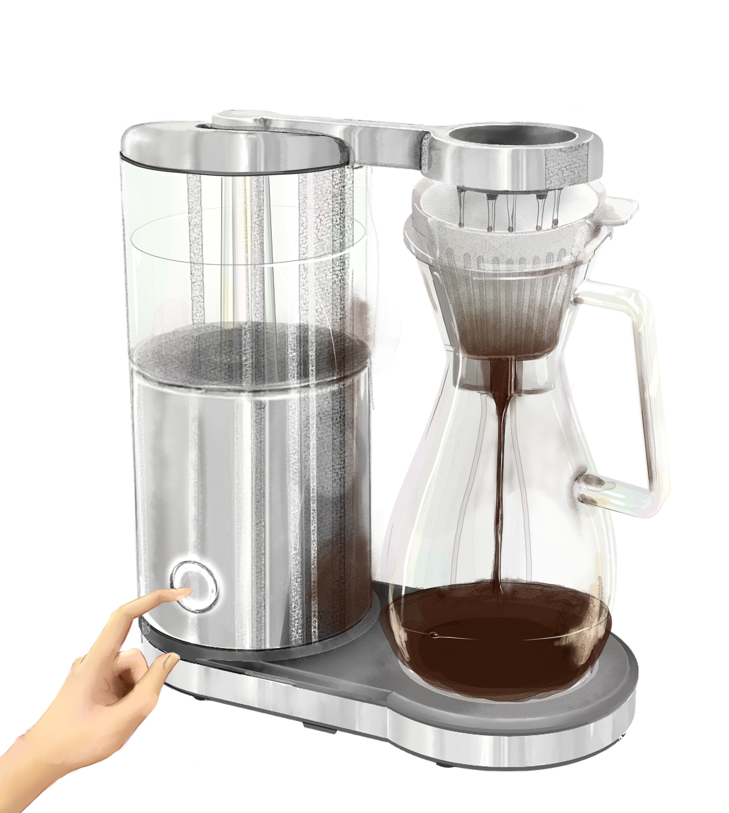 - Press the On/Off power button. The button will illuminate white as the Coffee Maker begins the BREW cycle.