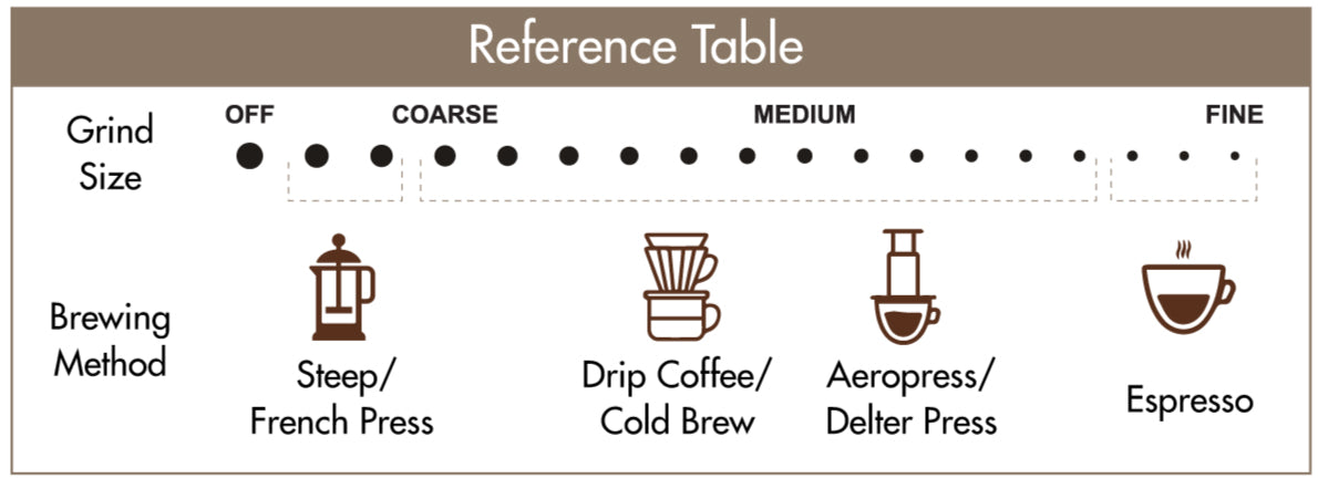 Select the desired grinding size by turning the grinding setting from 1(fine) to 17(coarse)