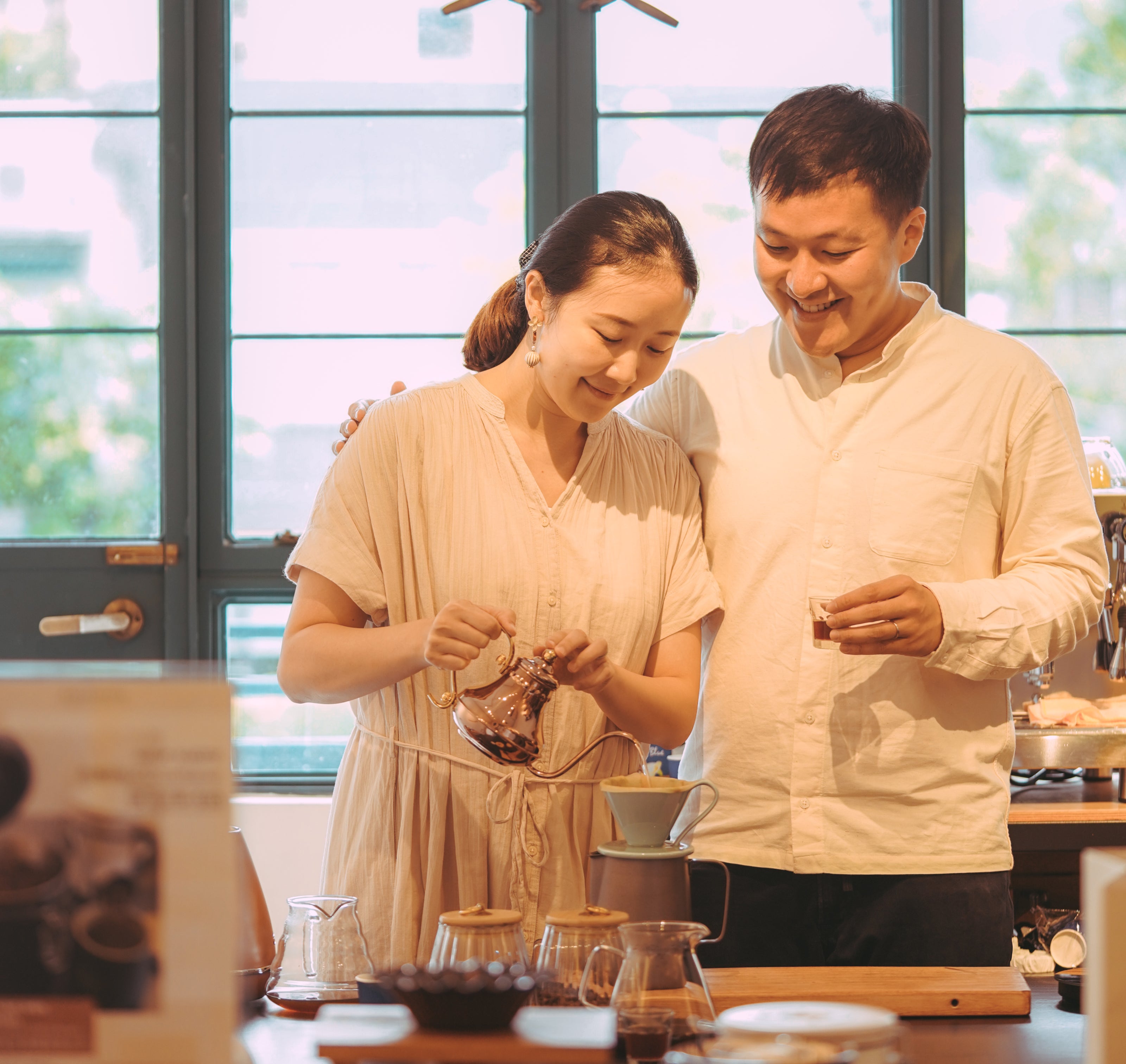 different coffee beans and brew in various ways. They can have hands-on experience on brewing their own cup with different brewing equipment.